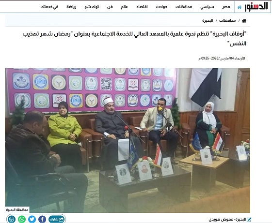 نظم اليوم قسم رعاية الشباب بالمعهد العالي للخدمة الاجتماعية بدمنهور ندوة دينية بعنوان ( رمضان شهر تهذيب النفس )